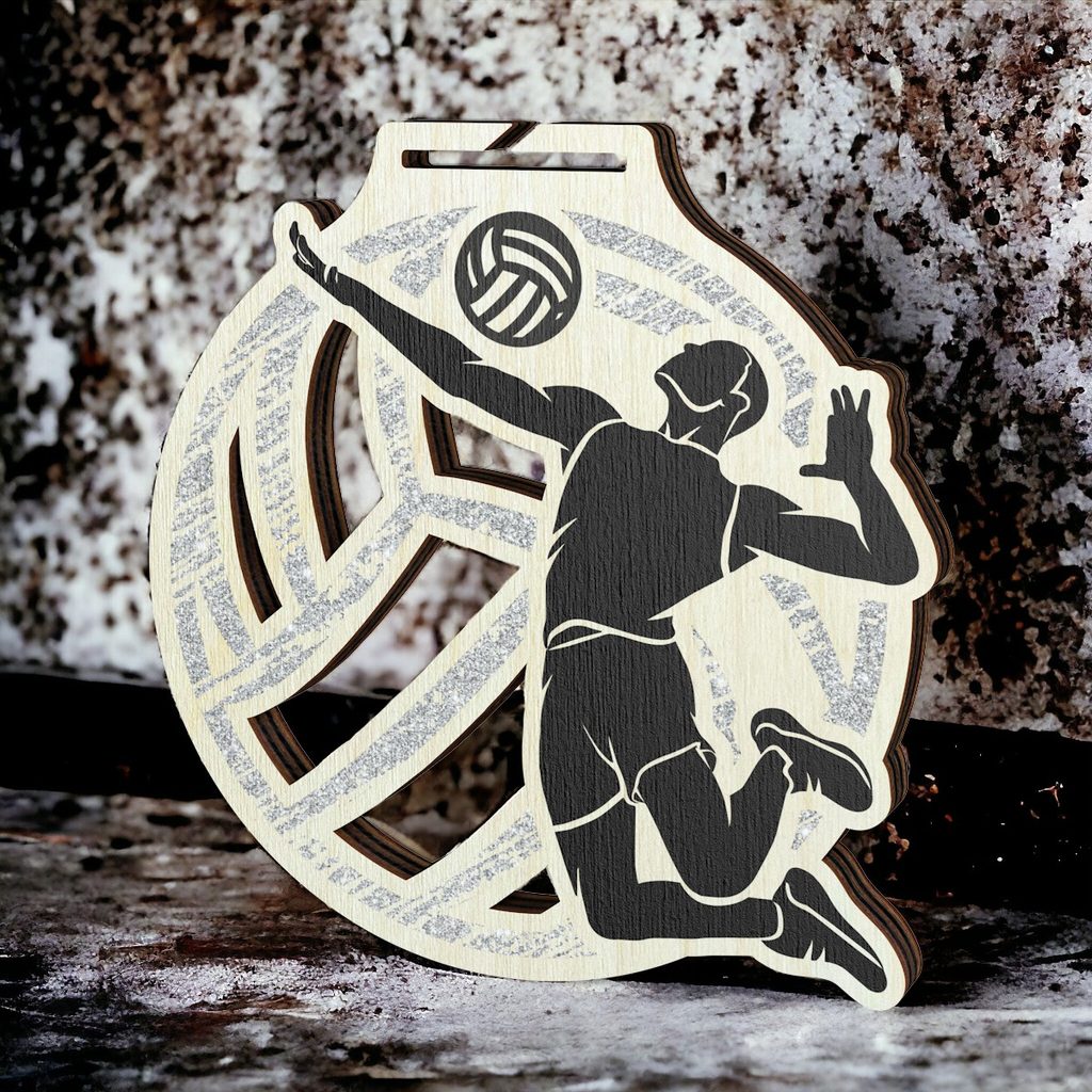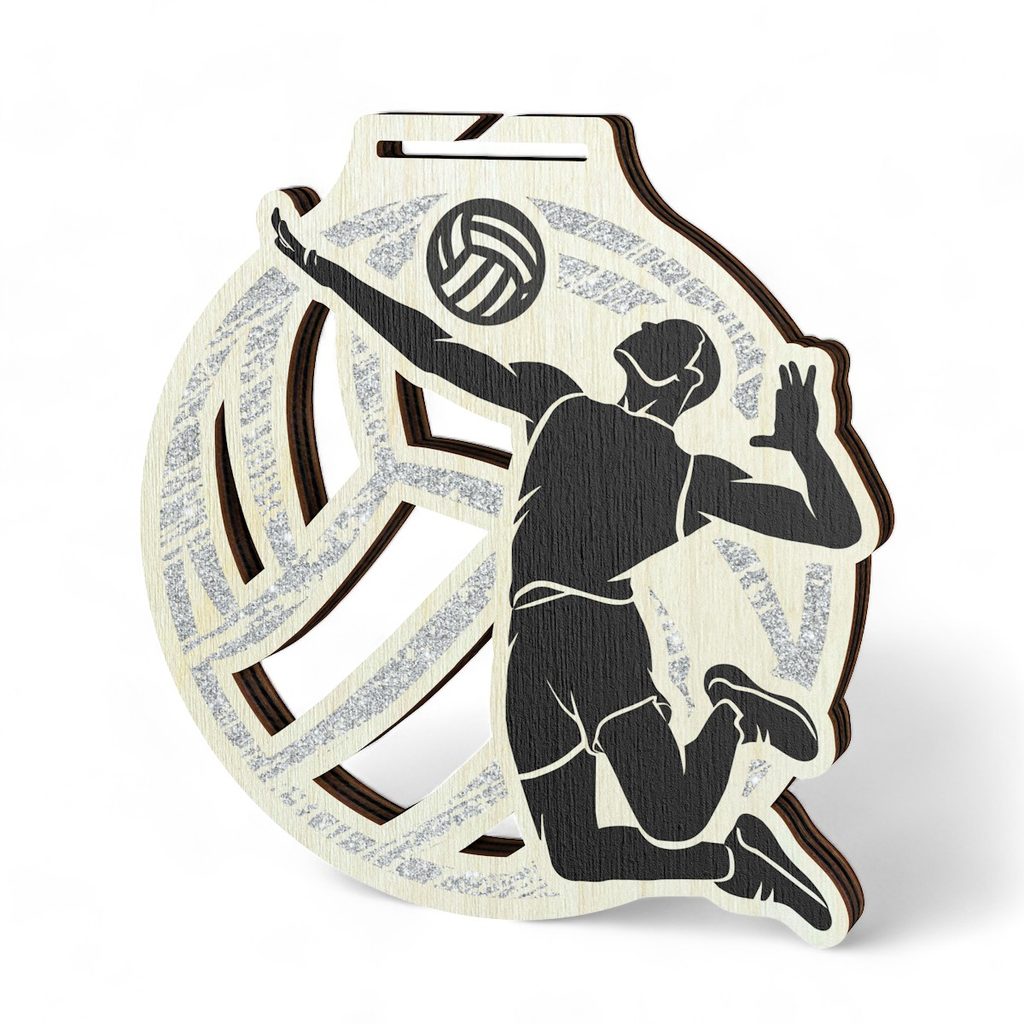 The Acacia Volleyball Silver Eco Friendly Wooden Medal demonstrates eco-friendly excellence in award design