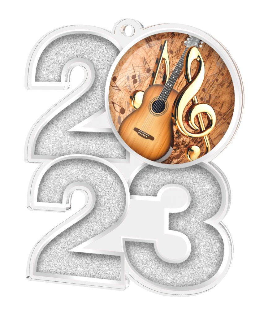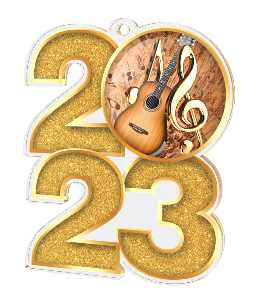 The Acoustic Guitar Acrylic 2023 Medal is part of a brand new exciting exclusive range available in a gold, silver or bronze finish. Made in a large size of 70mm (h) x 60mm (w).