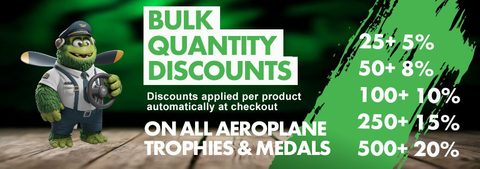 Experience the ultimate in recognition with our exclusive aeroplane trophies. With quick delivery and an ever-evolving design lineup, you can elevate your awards ceremony to new heights, celebrating ambition, perseverance, and the thrill of achievement. Click 'Add to Cart' now and let your winners take flight!