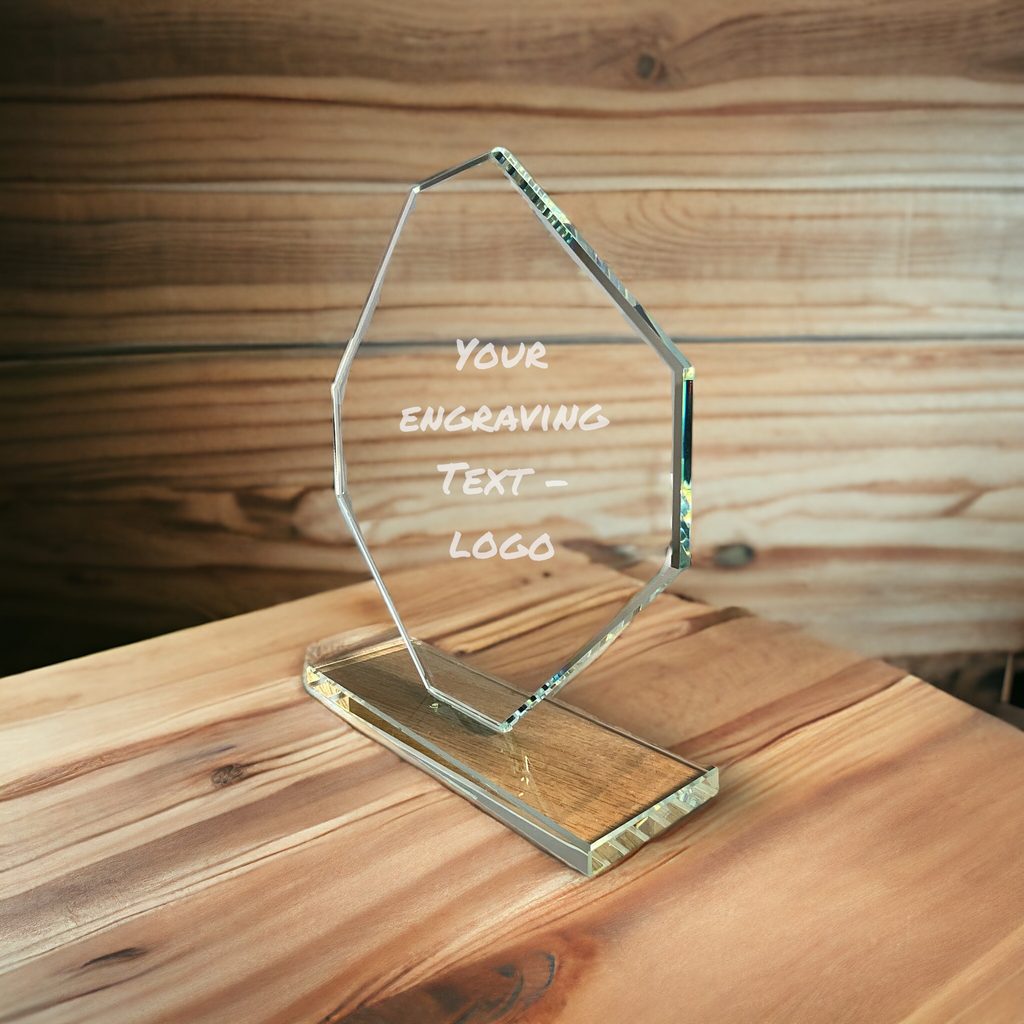 Note: Engraving is clear and uncoloured. For colour print options, see our Full Colour Printed Glass Awards.