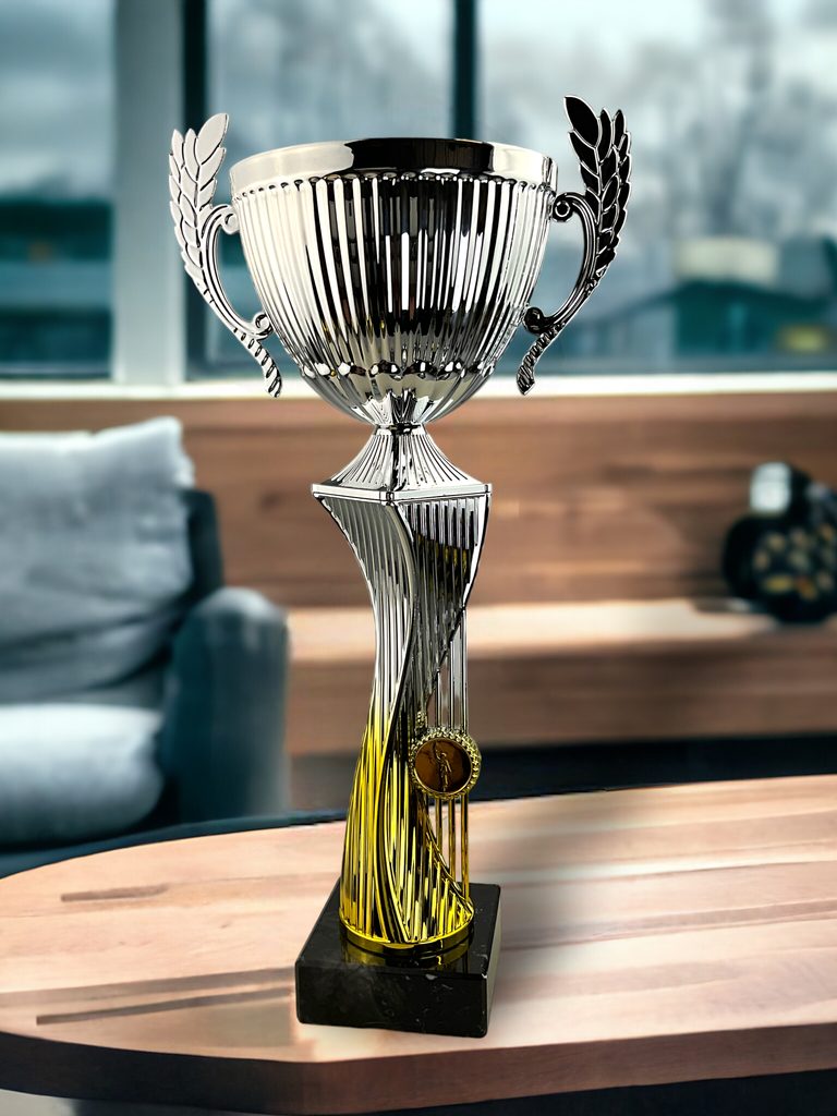 The Almena Silver & Gold Cup is a distinctive trophy award designed to stand out, thanks to its eye-catching sculptural stem. Combining a classic metal bowl with a playful, contemporary twist, it’s a perfect centrepiece for modern presentations.