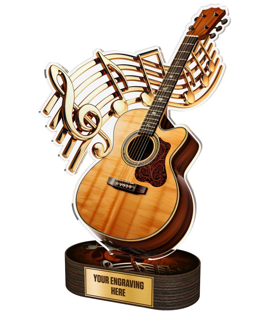 The Altus Acoustic Guitar Trophy is a sleek and modern award, designed to make a bold statement at any presentation.