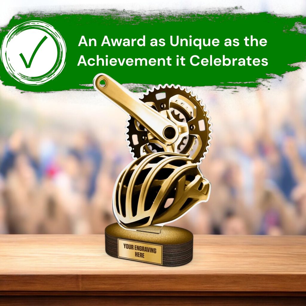The Altus Classic Cycling Trophy is a sleek and modern award, designed to make a bold statement at any presentation.