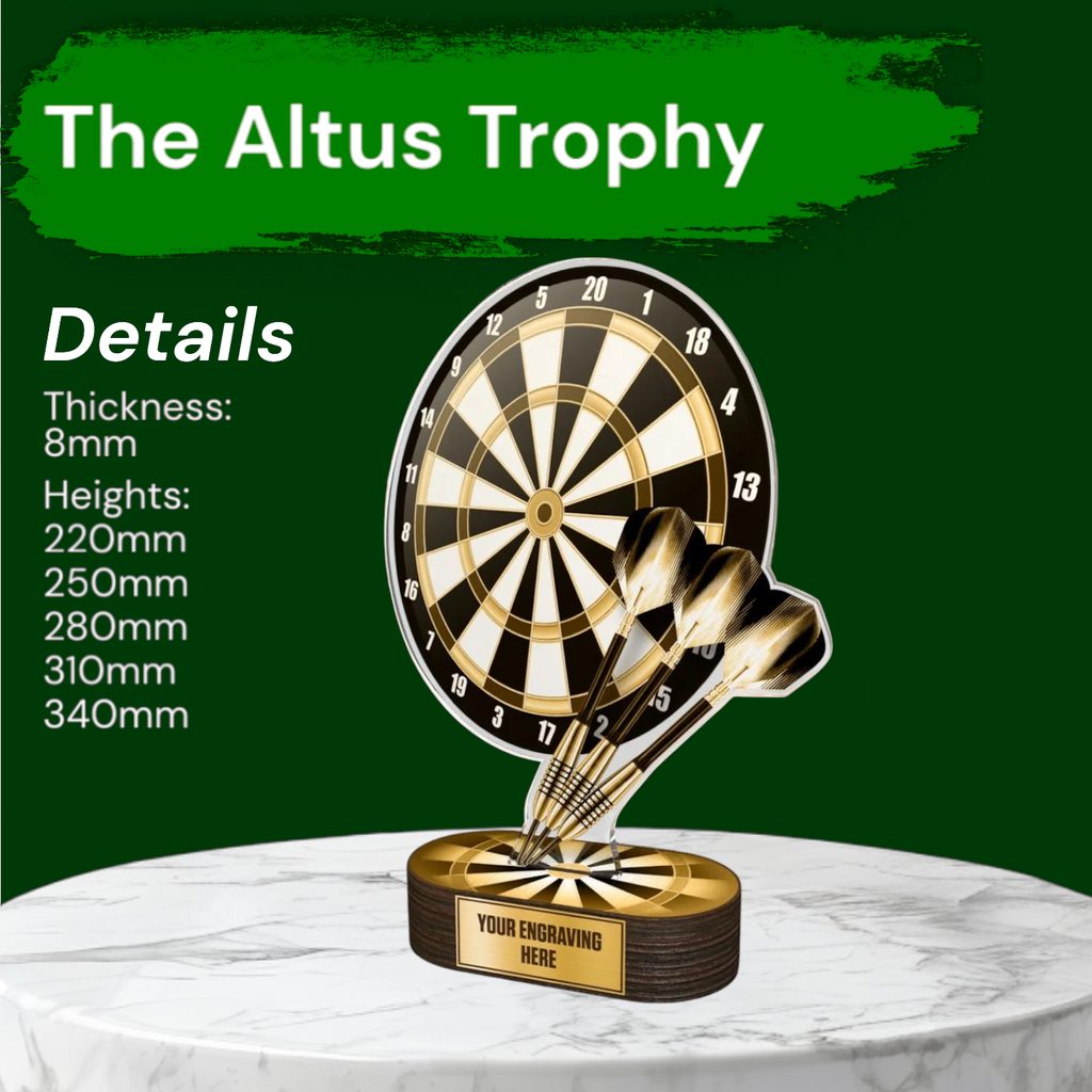 The Altus Classic Darts Trophy is a sleek and modern award, designed to make a bold statement at any presentation.