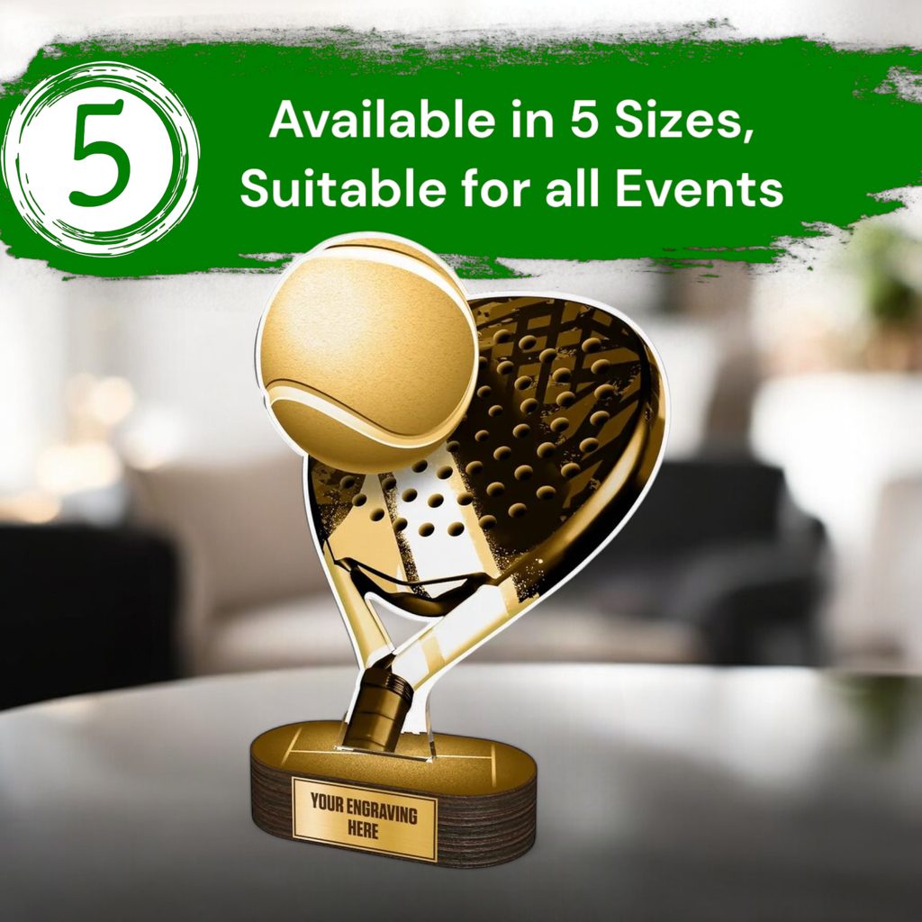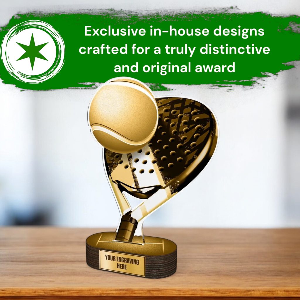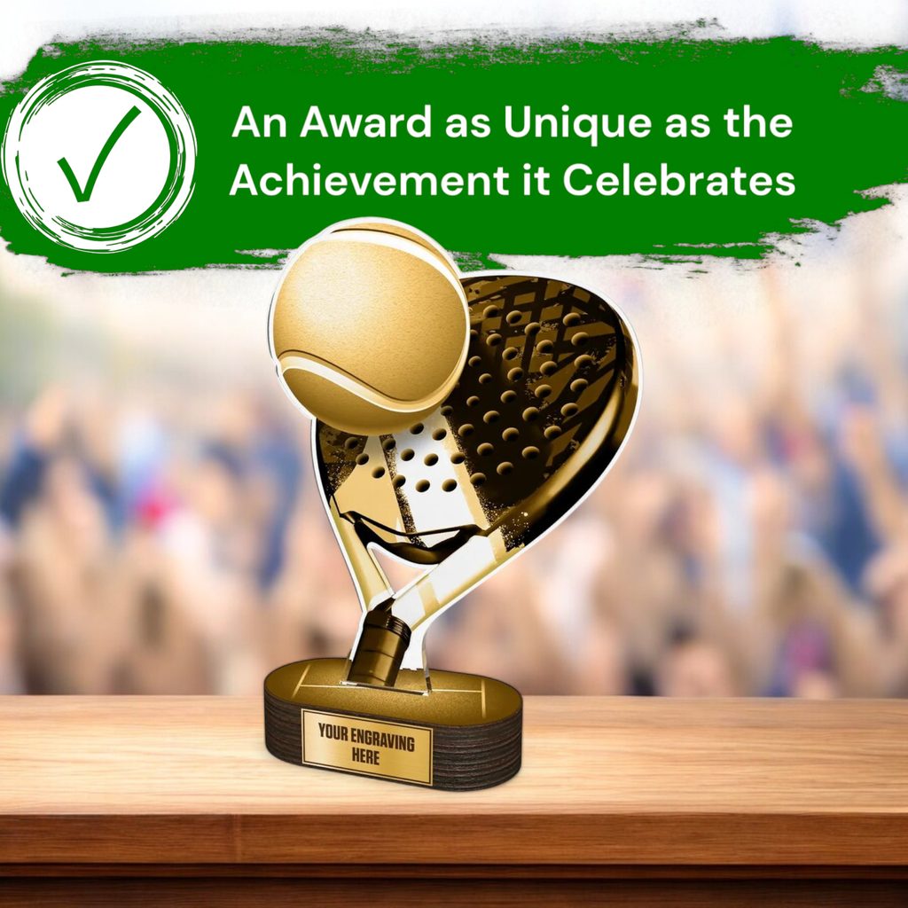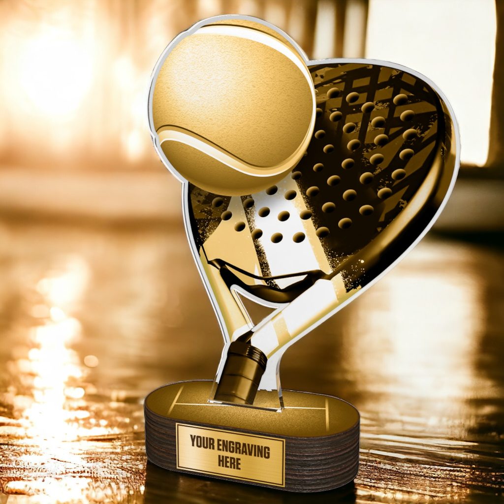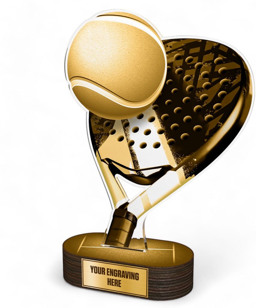 The Altus Classic Padel Trophy is a sleek and modern award, designed to make a bold statement at any presentation.