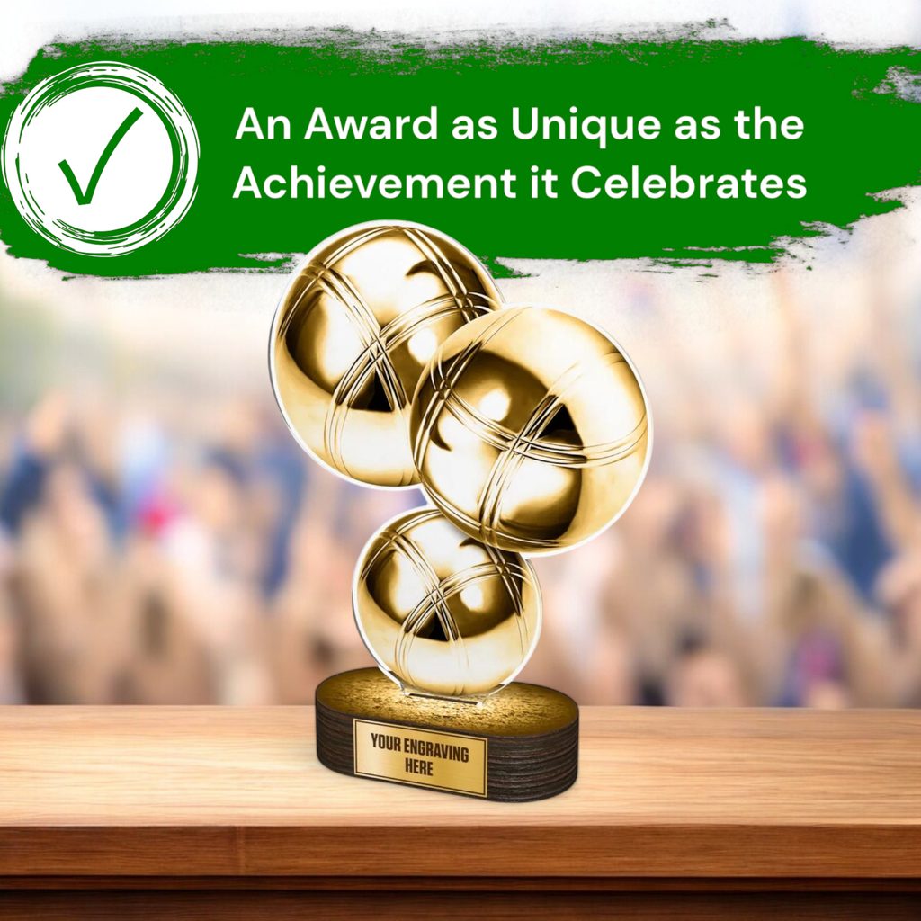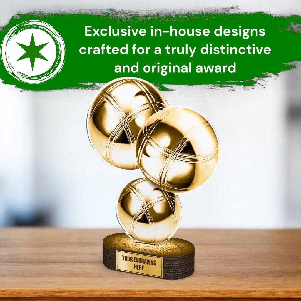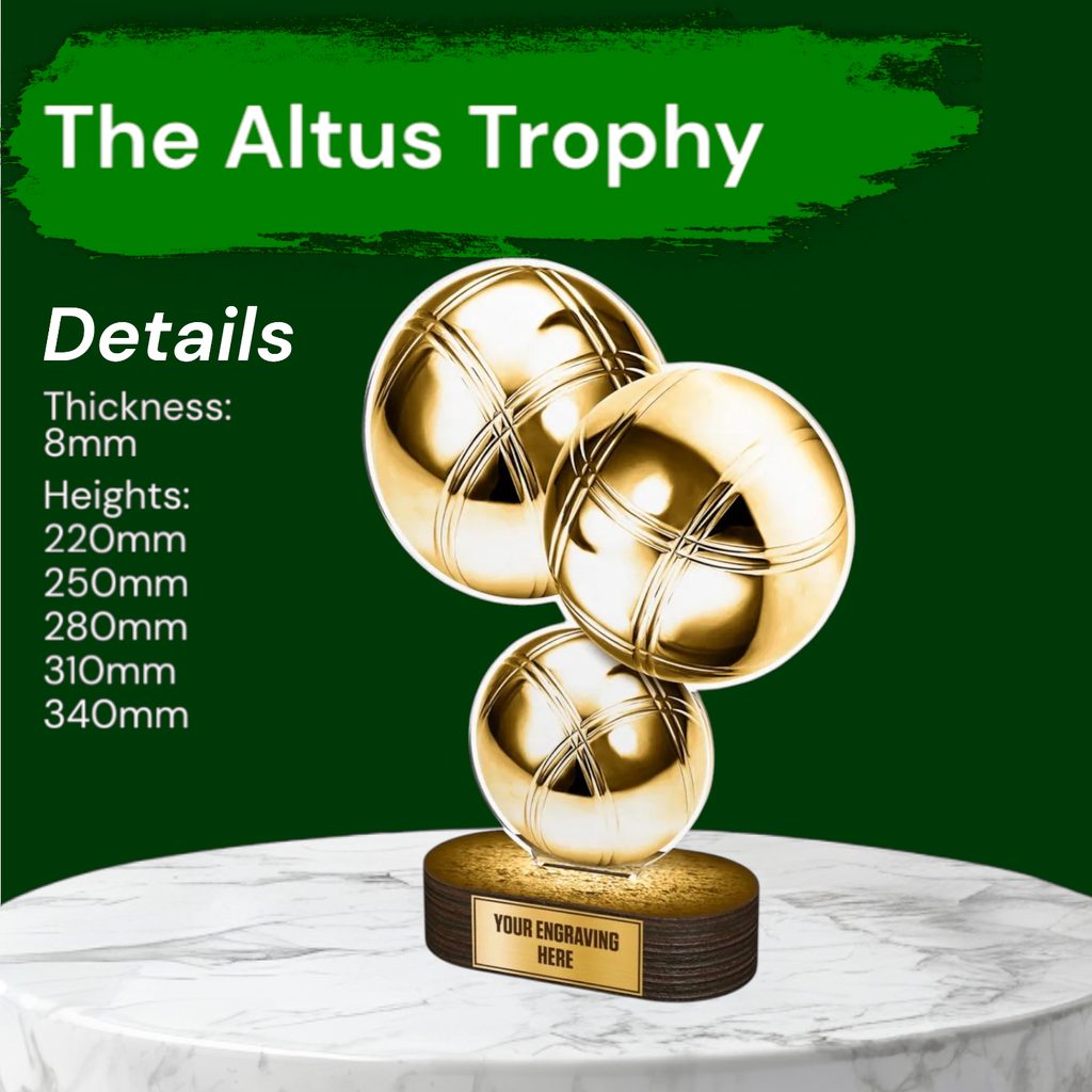 The Altus Classic Petanque Trophy is a sleek and modern award, designed to make a bold statement at any presentation.