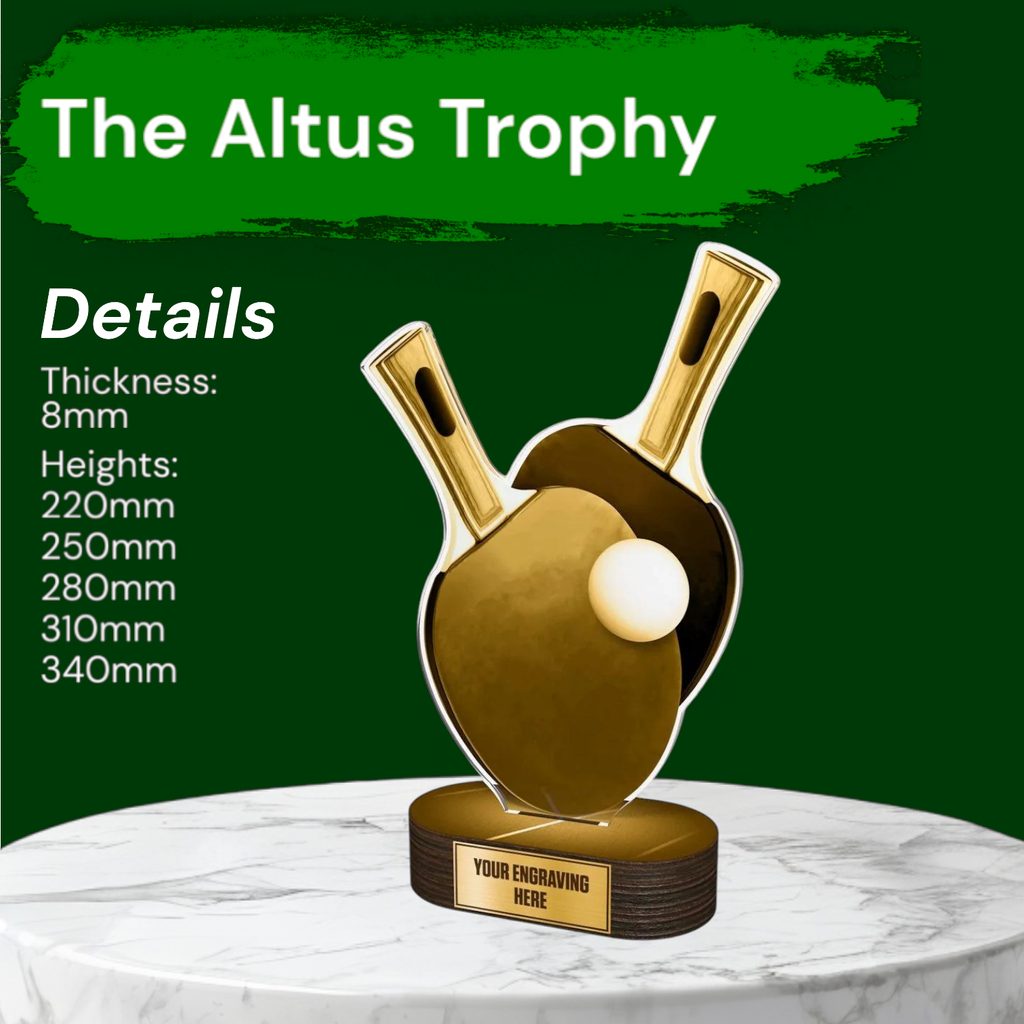 The Altus Classic Table Tennis Trophy is a sleek and modern award, designed to make a bold statement at any presentation.