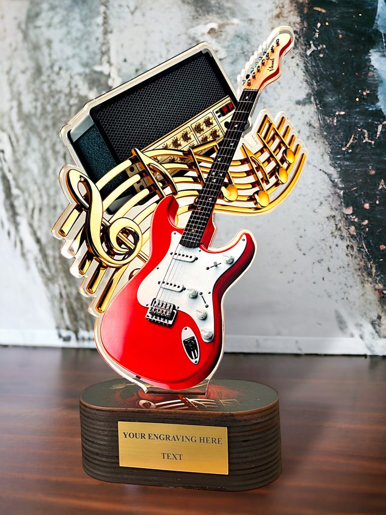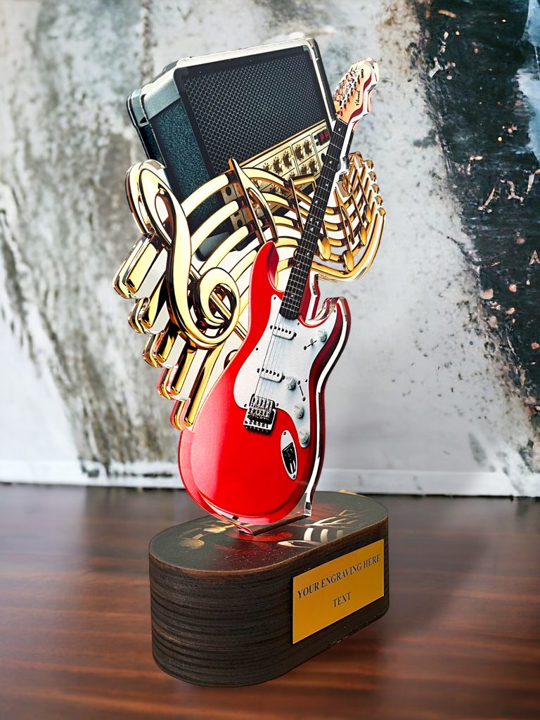 The Altus Electric Guitar Trophy is a sleek and modern award, designed to make a bold statement at any presentation.