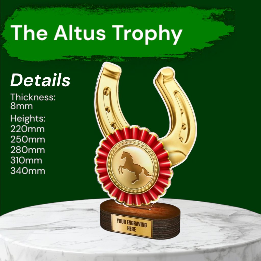 The Altus Horse Riding Trophy is a sleek and modern award, designed to make a bold statement at any presentation.
