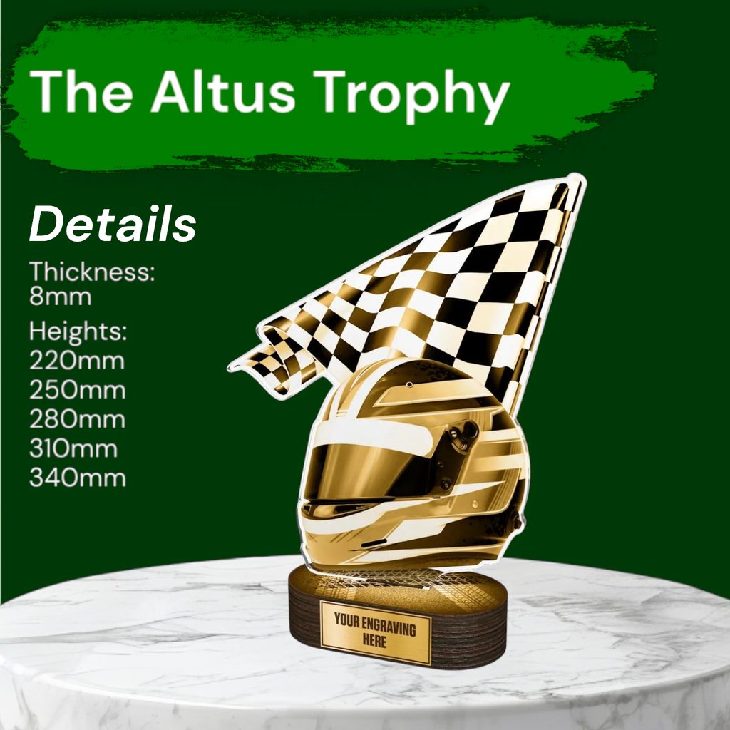 The Altus Motorsport Classic Trophy is a sleek and modern award, designed to make a bold statement at any presentation.