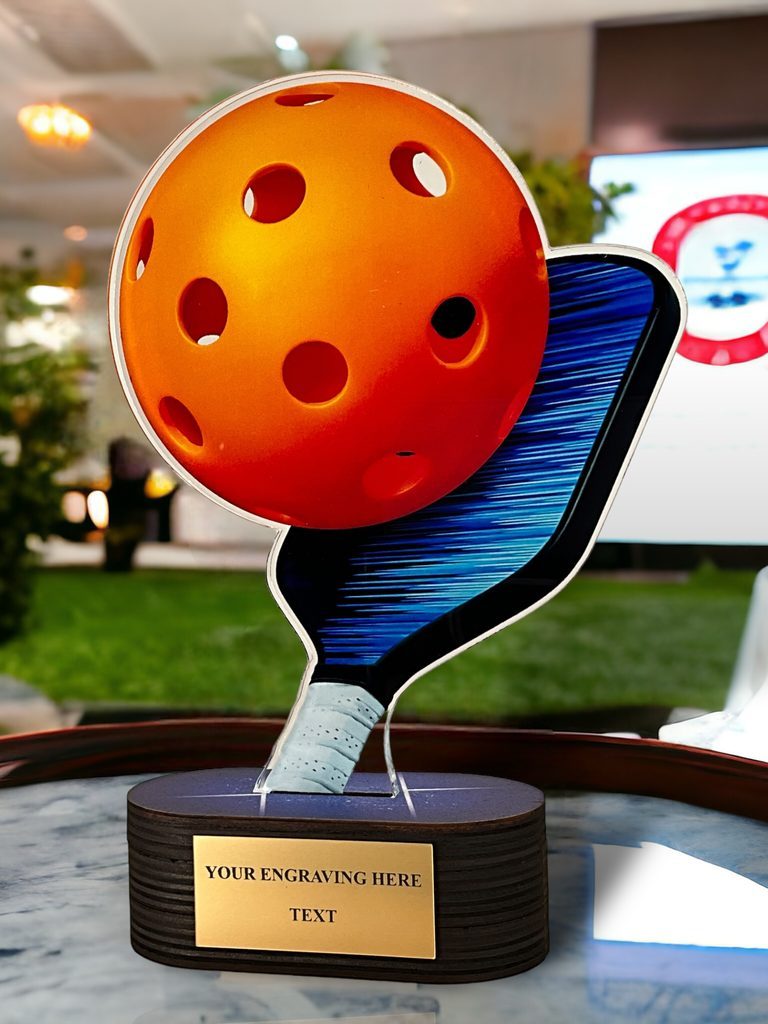 The Altus Pickleball Trophy is a sleek and modern award, designed to make a bold statement at any presentation.