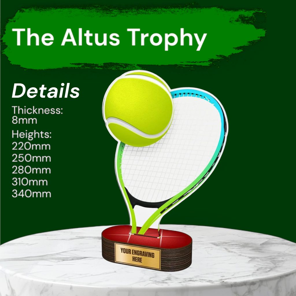 The Altus Tennis Trophy is a sleek and modern award, designed to make a bold statement at any presentation.