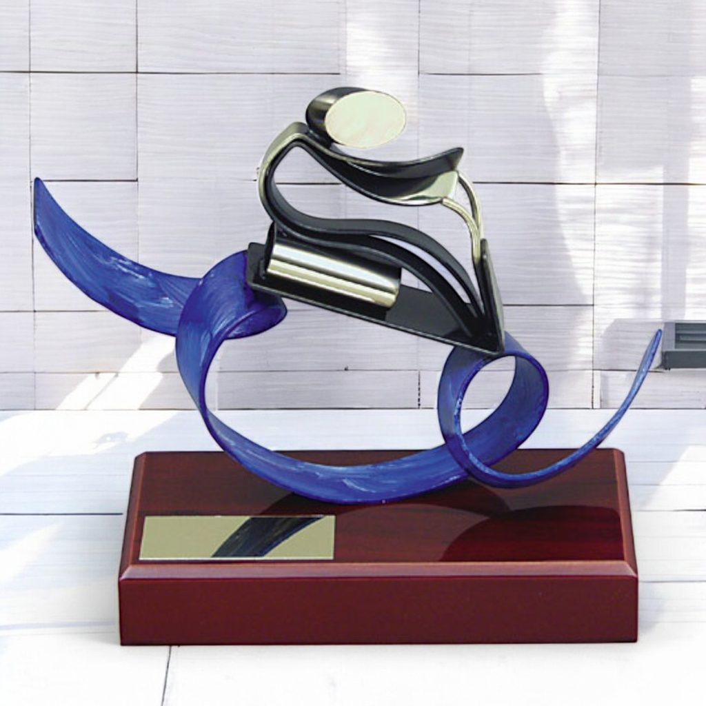 Presenting the elegant Barcelona Jet Ski Trophy—a superbly handcrafted metal award that exudes grace and distinction. Set on a luxurious wooden base, this trophy adds a refined presence to any setting.