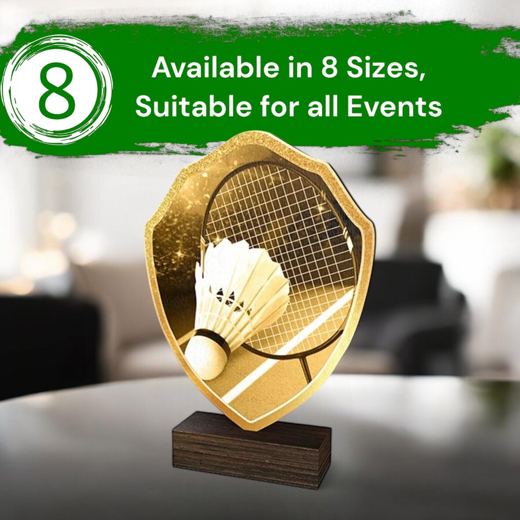 The Arden Classic Badminton Real Wood Shield Trophy is a stylish and eco-friendly award, combining sustainability with premium craftsmanship.