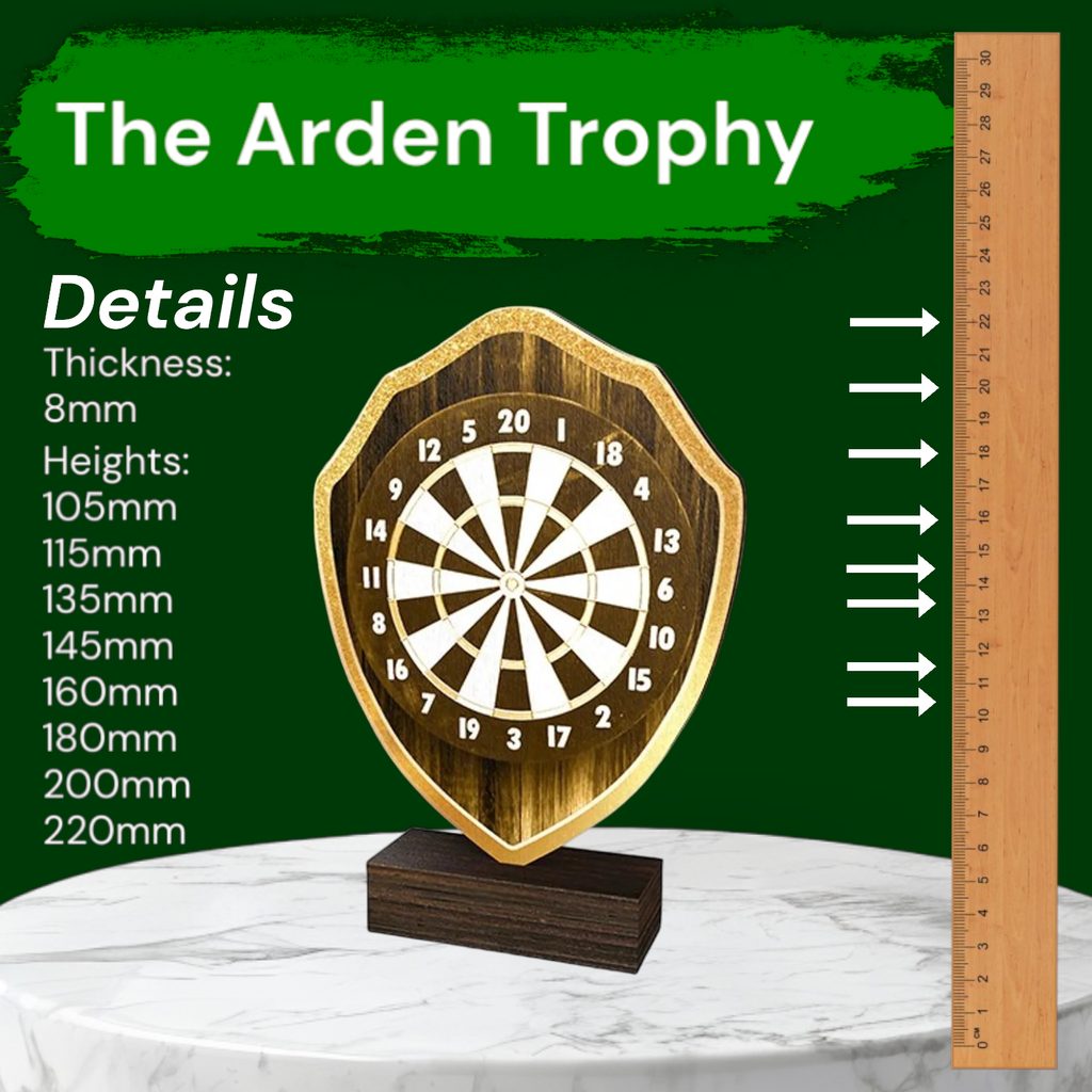 The Arden Classic Darts Real Wood Shield Trophy is a stylish and eco-friendly award, combining sustainability with premium craftsmanship.