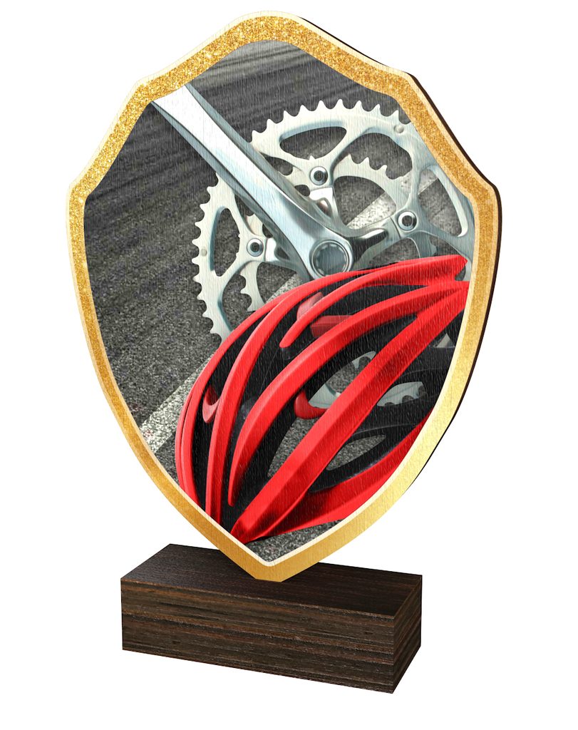The Arden Cycling Real Shield Wood Trophy is an eco friendly award made from 8mm thick natural birch plywood, mounted on a 2cm thick wooden base. A sustainable award that is part of a collection designed and manufactured in our own factory. Not only for the environmentally conscious, this trophy will prove popular in any presentation.