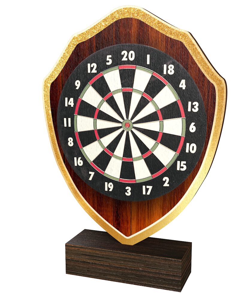 The Arden Darts Real Shield Wood Trophy is an eco friendly award made from 8mm thick natural birch plywood, mounted on a 2cm thick wooden base. A sustainable award that is part of a collection designed and manufactured in our own factory. Not only for the environmentally conscious, this trophy will prove popular in any presentation.