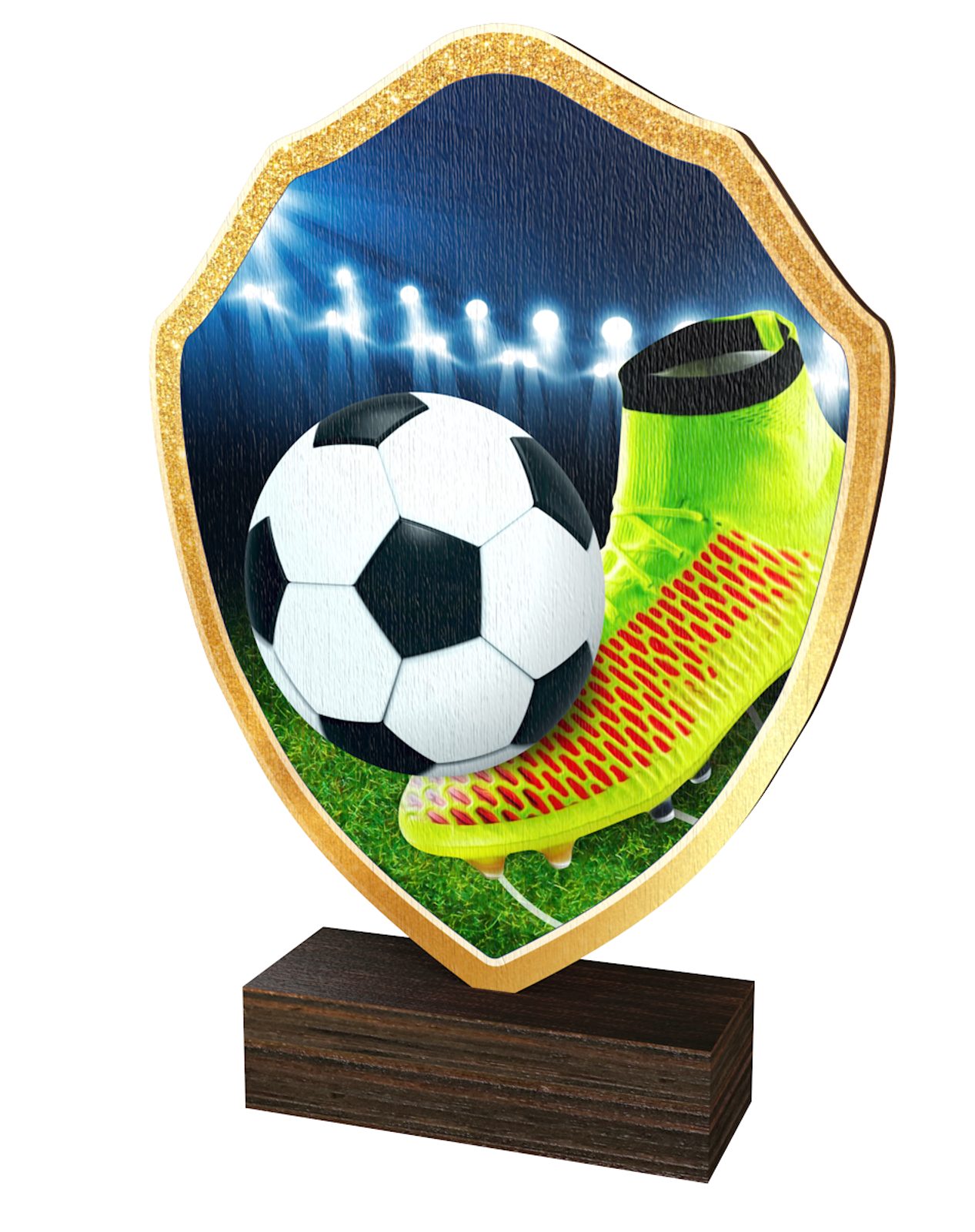 The Arden Football Boot Real Wood Shield Trophy is a stylish and eco-friendly award, combining sustainability with premium craftsmanship.
