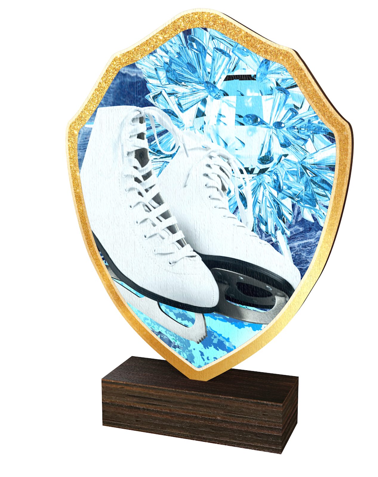 The Arden Ice Skating White Boot Real Wood Shield Trophy is a stylish and eco-friendly award, combining sustainability with premium craftsmanship.