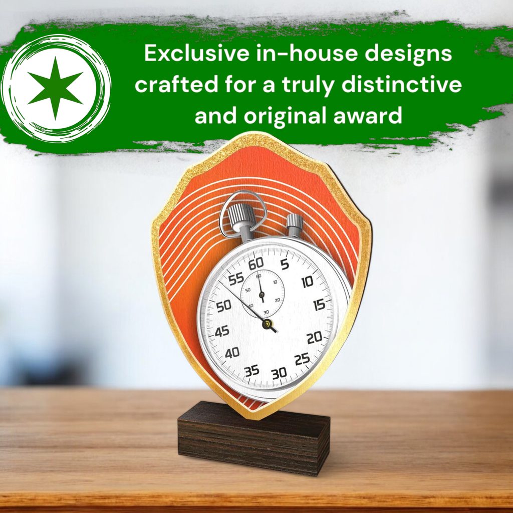 The Arden Running Real Wood Shield Trophy is a stylish and eco-friendly award, combining sustainability with premium craftsmanship.