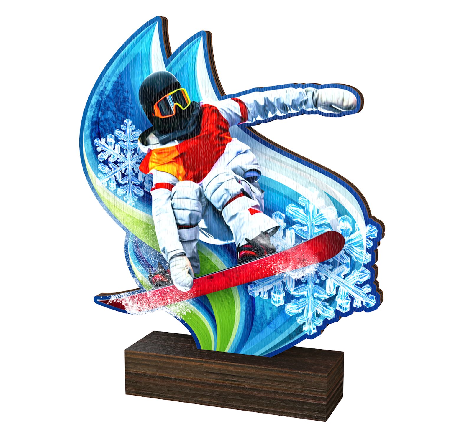 The Sierra Snowboard Real Wood Trophy is a perfect blend of sustainability and sophistication, crafted for those who value both eco-friendly materials and exceptional design. Made from 8mm thick natural birch plywood, this award embodies modern craftsmanship and environmental responsibility, offering a premium alternative to traditional trophies. Mounted on a solid rectangular wooden base, it provides a sturdy and elegant foundation, making it a true centrepiece for any awards presentation.