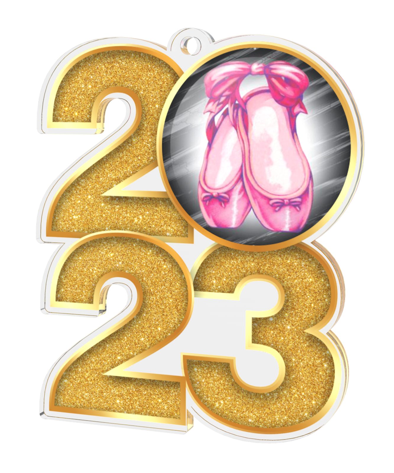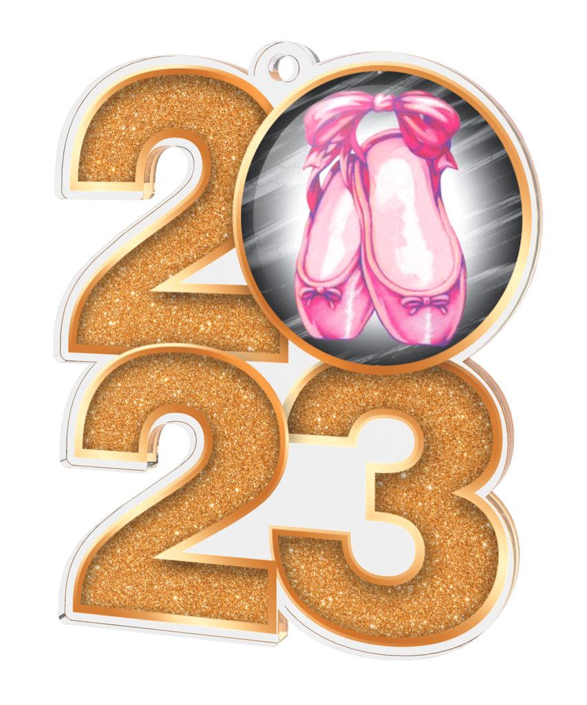 Ballet Shoes 2023 Acrylic Medal is part of a brand new exciting exclusive range available in a gold, silver or bronze finish. Made in a large size of 70mm (h) x 60mm (w).