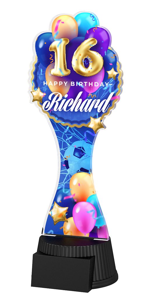 A new and exclusive Trophy Monster concept football trophy. Award the birthday boy or girl a fully customised trophy printed with their name and age.