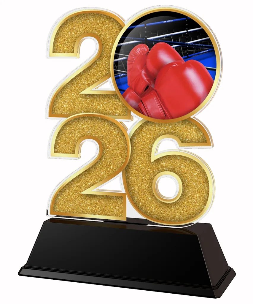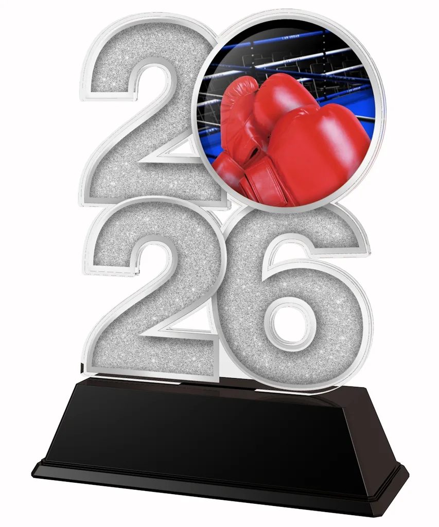 Celebrate strength, discipline and determination with the Boxing Year Trophy, a bold and modern acrylic award designed especially for boxing clubs, gyms, schools and competitions. Featuring a striking year design and full-colour boxing-themed imagery, this trophy makes a powerful centrepiece for any presentation or awards night.