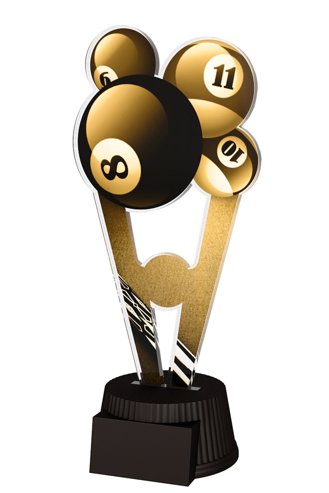 The Budapest Pool Balls Trophy is an eye-catching award. Expertly cut to shape, this award features a double sided sepia-style print onto the 6mm thick acrylic and then mounted on a black circular PVC.