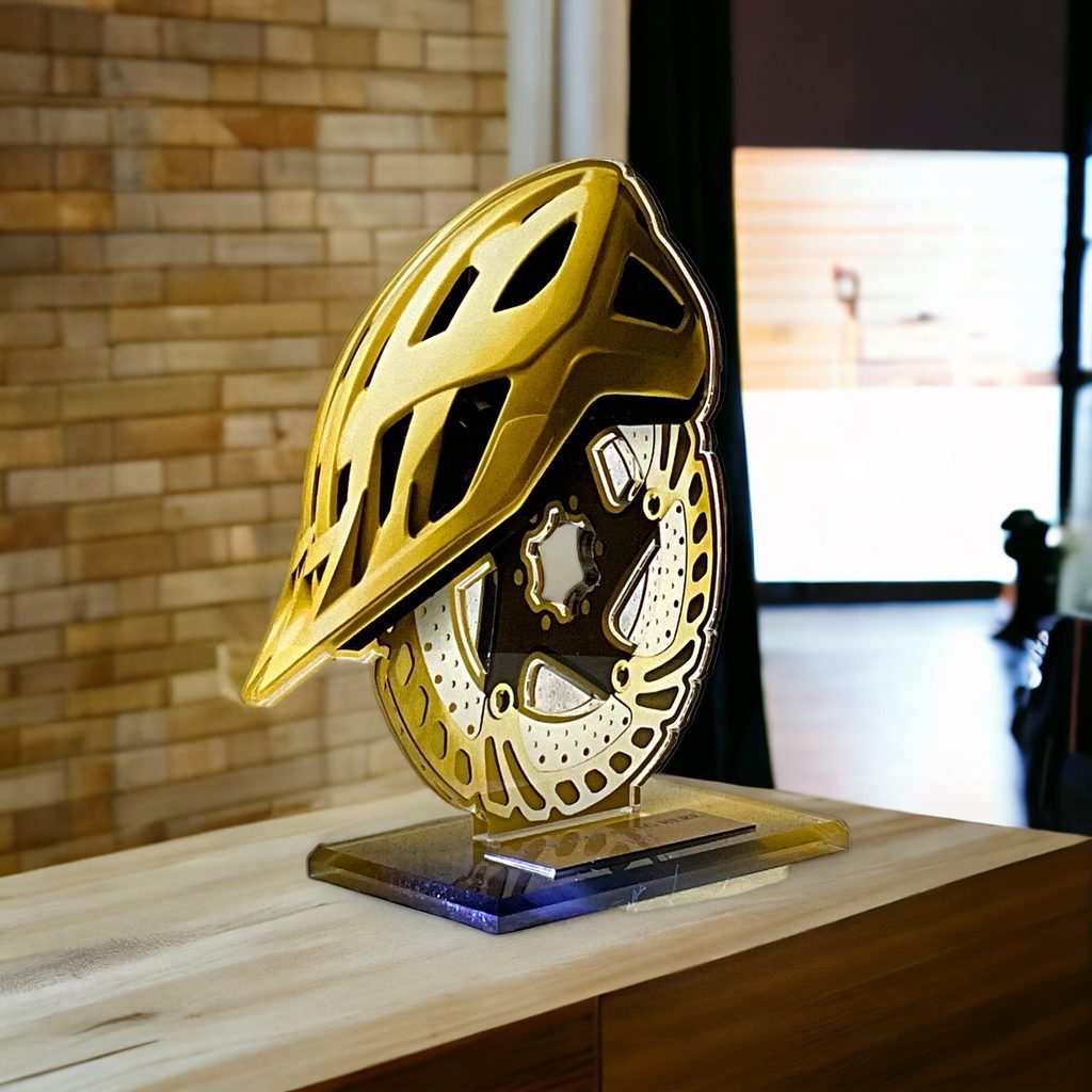 A stunning modern award, the Cannes Classic Mountain Biking Trophy features a sleek and elegant design that stands out in any presentation.