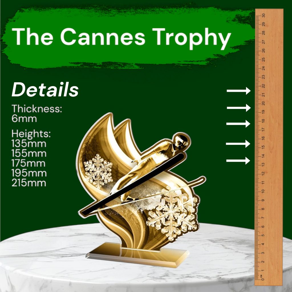 A stunning modern award, the Cannes Classic Ski Jump Trophy features a sleek and elegant design that stands out in any presentation.