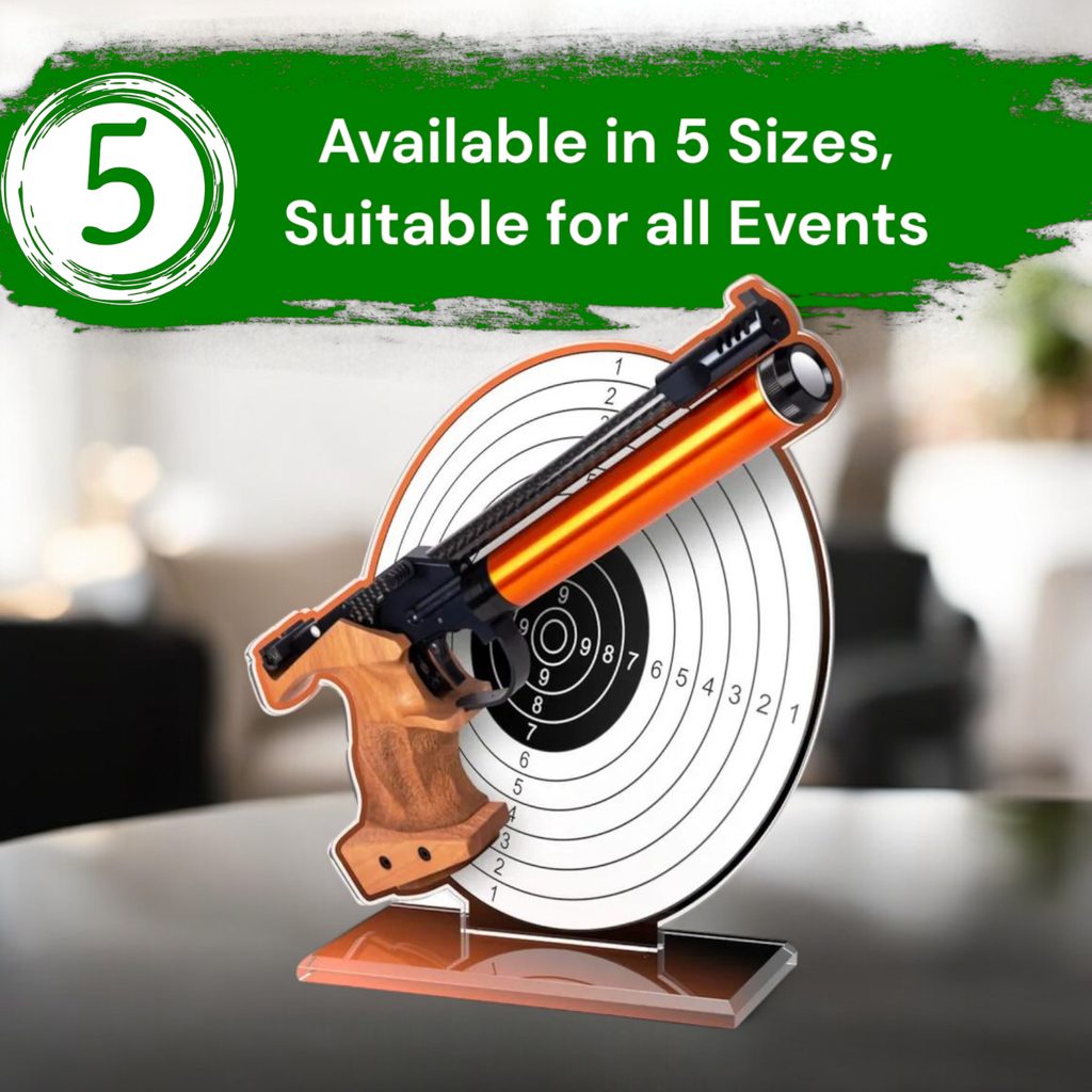 A stunning modern award, the Cannes Pistol Shooting Trophy features a sleek and elegant design that stands out in any presentation.