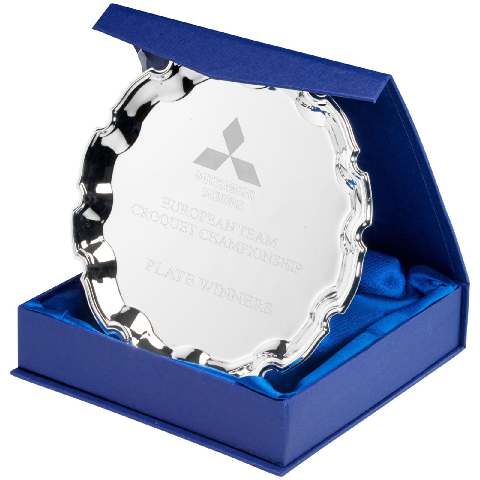 The Chippendale Salver is a classic value award. The tray is silver and is offered in three sizes. Comes complete in a silk lined presentation box as illustrated.