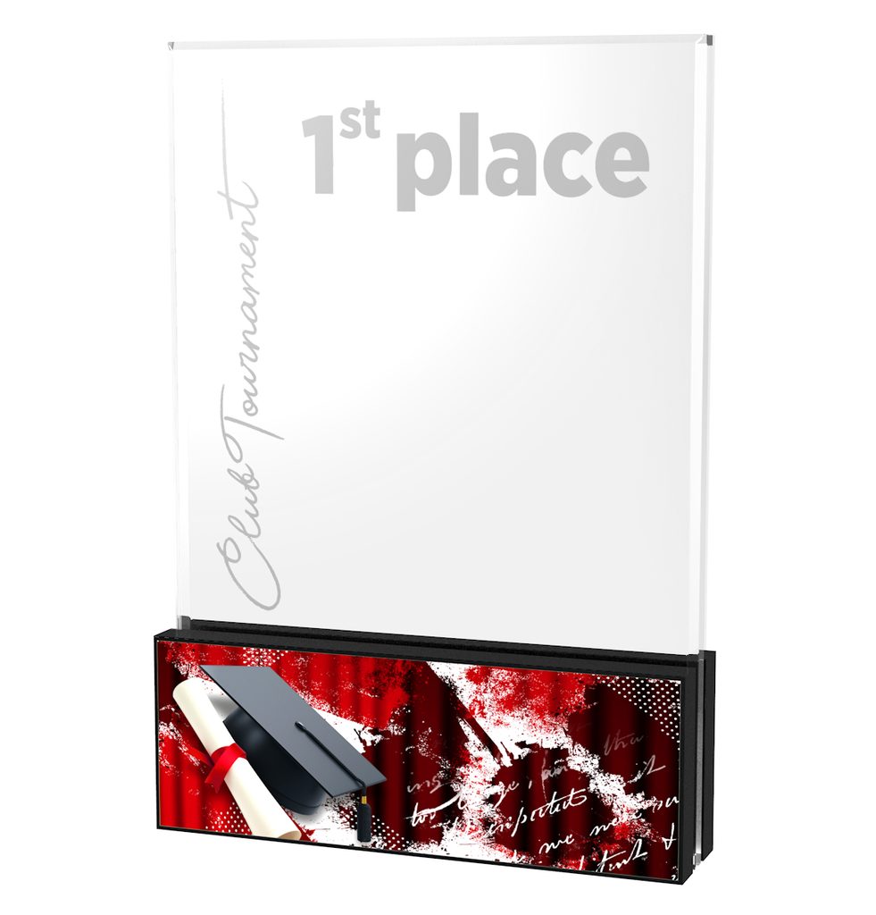 The City Printed Acrylic Graduation Award is an ingenious new in-house-made trophy. This award is made using 10mm thick premium acrylic mounted in-between two pieces of shaped black 10mm thick acrylic. This gives the trophy a very professional sturdy base.