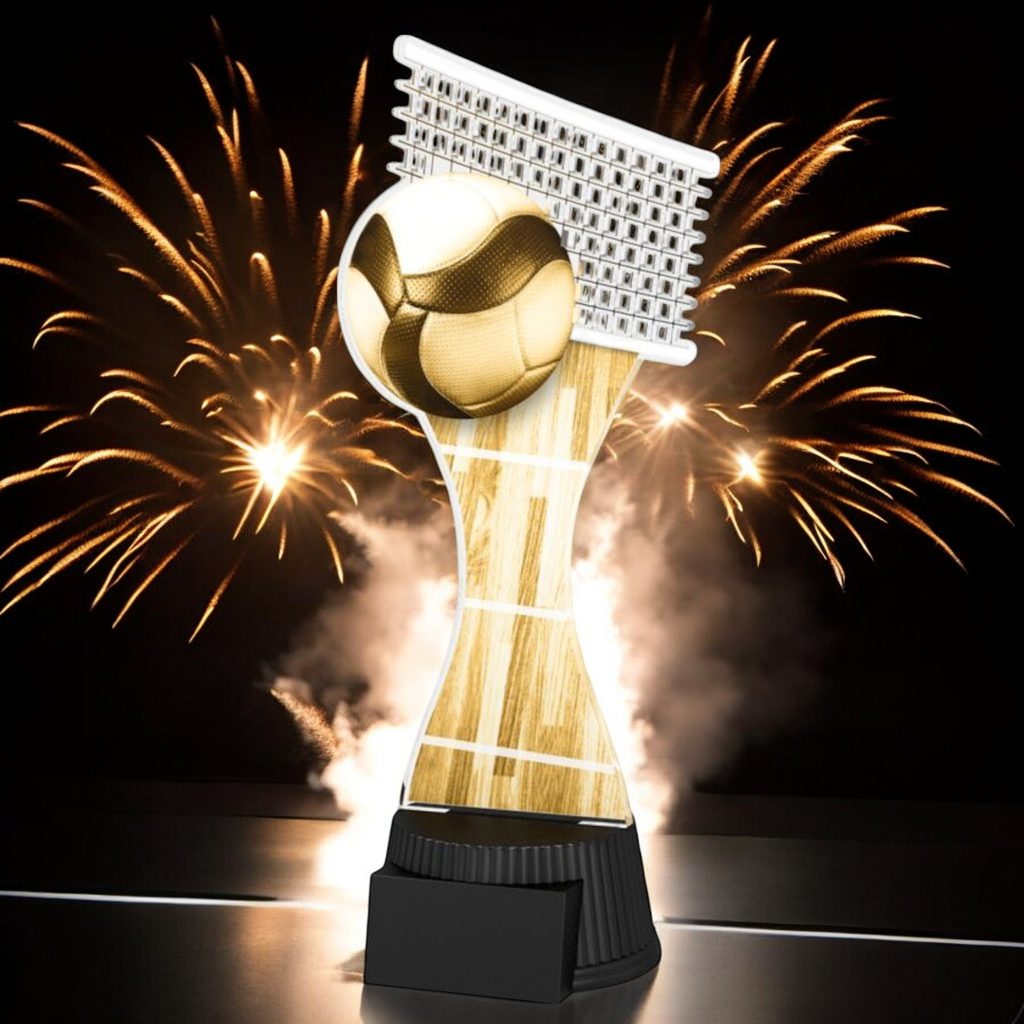 The Toronto Volleyball Trophy is a sleek and contemporary award, designed to make a bold statement at any presentation. With its modern silhouette and eye-catching design, this trophy is the perfect way to honour outstanding achievements in sports, business, and beyond.