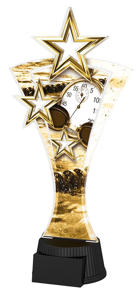 The Classic Triple Star Swimming Trophy is an eye-catching award with a dynamic and bold design.
