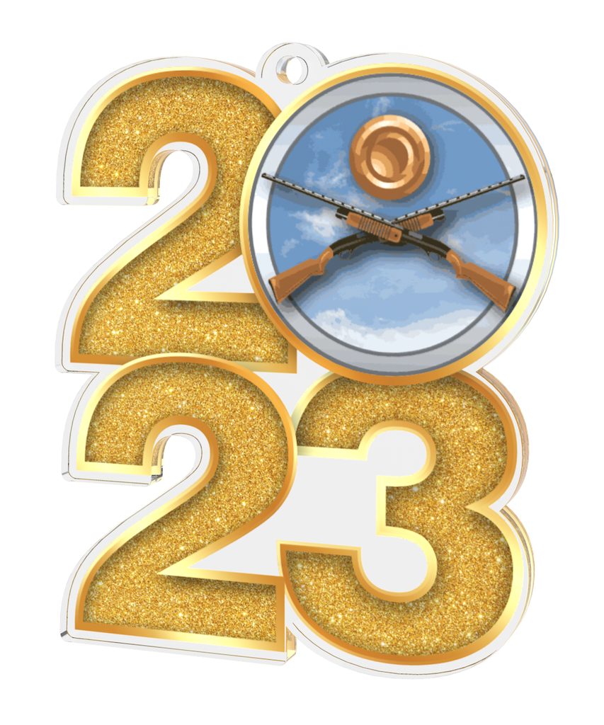Clay Pigeon Shooting Acrylic 2023 Medal is part of a brand new exciting exclusive range available in a gold, silver or bronze finish. Made in a large size of 70mm (h) x 60mm (w).