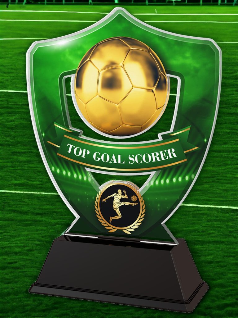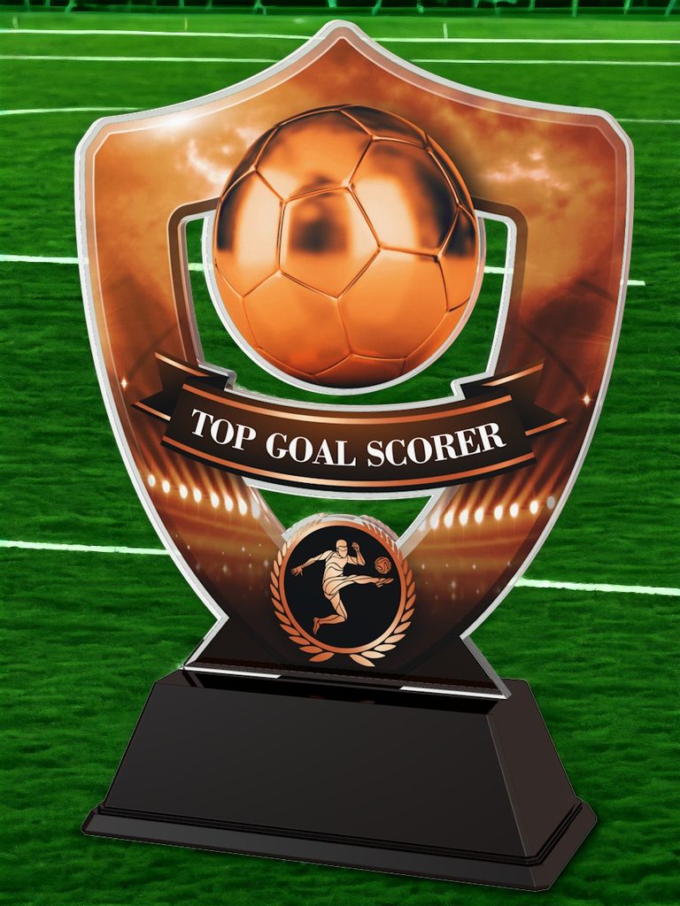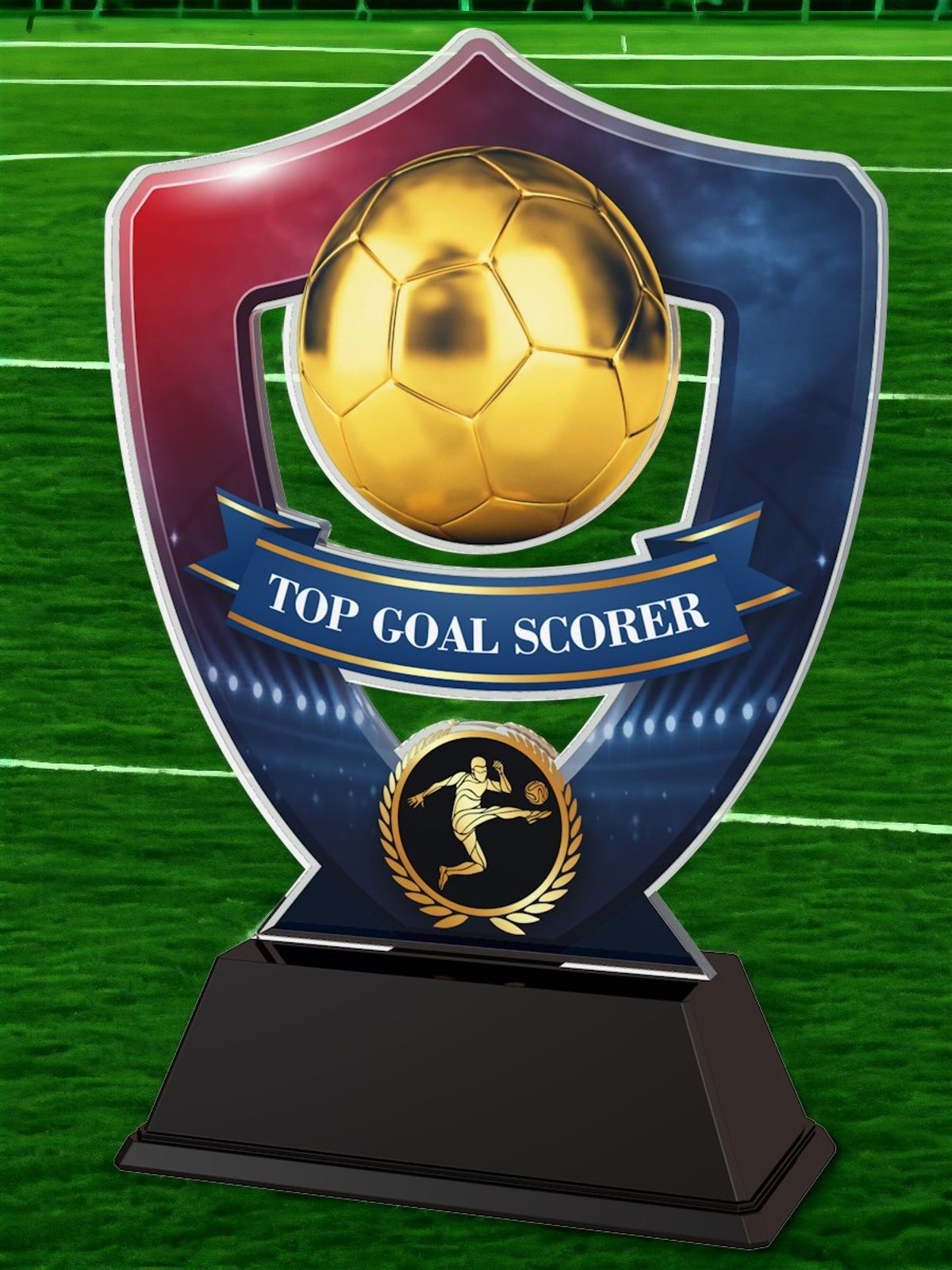 The Club Colours Top Goal Scorer Shield Trophy is a stylish and versatile award, perfect for celebrating team or individual achievements.