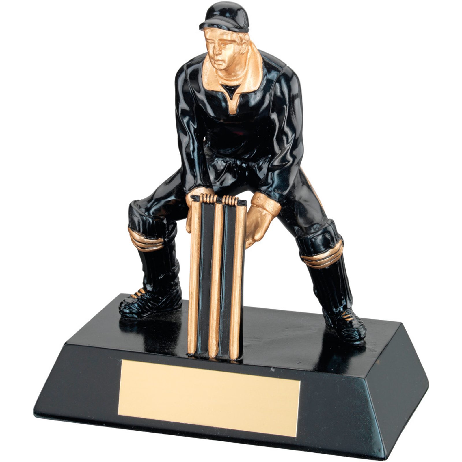 The Cricket Wicket Keeper Trophy is an excellent design made from top quality resin. Glazed in a silky black and gold colour.