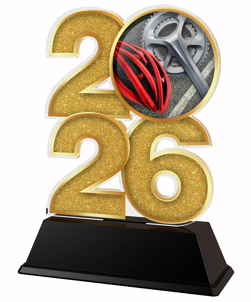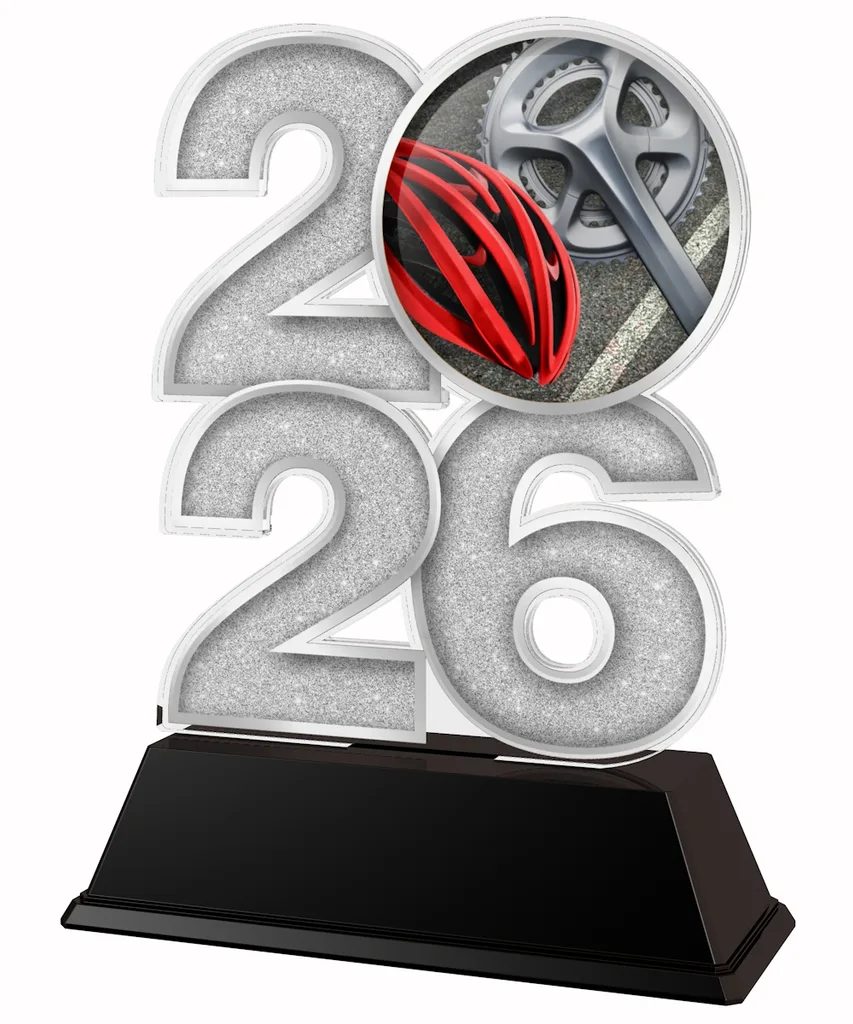 Celebrate endurance, speed and achievement with the Cycling Year Trophy, a bold and modern acrylic award designed especially for cycling clubs, schools, leagues and competitions. Featuring a striking year design and full-colour cycling-themed imagery, this trophy makes a standout centrepiece for any presentation or awards ceremony.