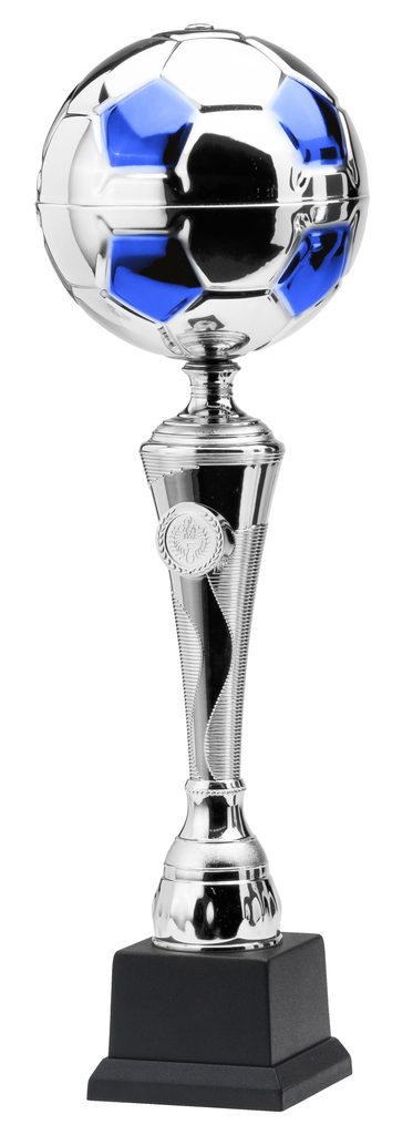 The De Bruyne Silver and Blue Football Trophy is a fantastic premium football award. Consisting of a high quality metal football, atop a high definition plastic stem, all mounted onto a heavyweight PVC base. Sure to be the standout award at your next presentation!