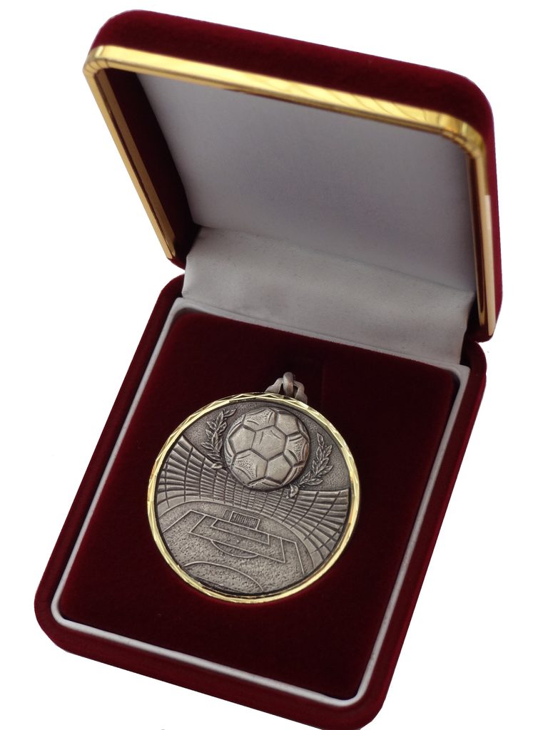 A very good quality red velour medal box made with a gold metal trim. To fit a 52mm medal. With a white satin look backdrop this medal case will enhance any medal.