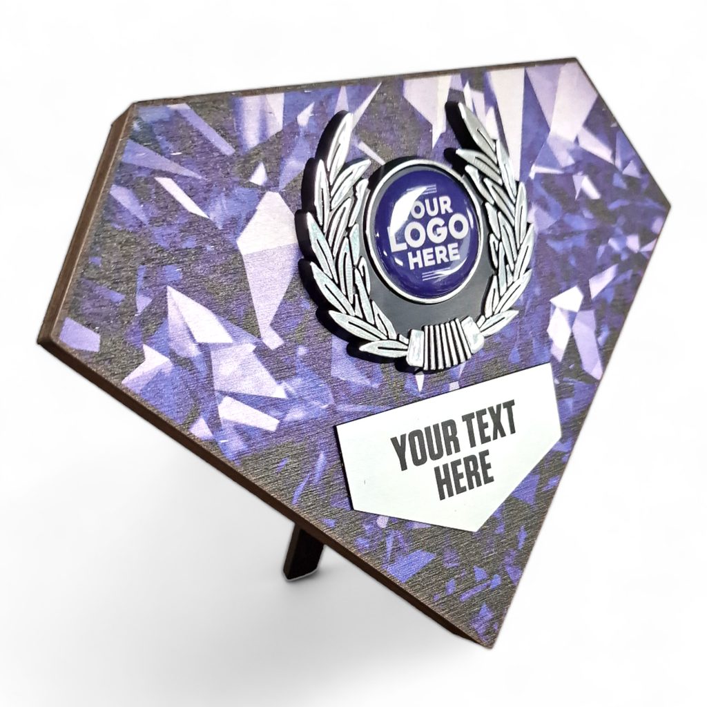 A bold and prestigious award, the Diamond Blue Birchwood Logo Insert Shield is perfect for recognising outstanding accomplishments.