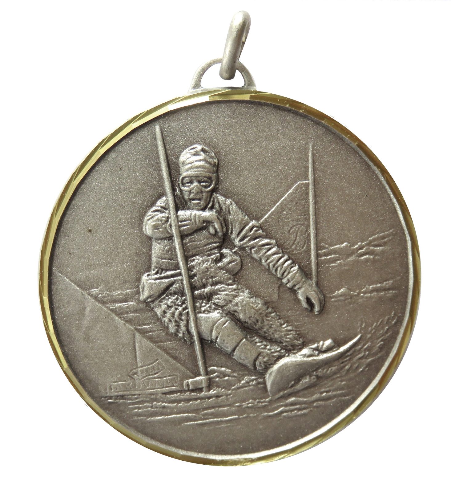 A top quality embossed diamond edged silver snowboard medal made from brass. The medal displays a snowboarder in action. The diameter is 50mm and the thickness is 3mm giving the medal a heavy feel. This medal can be engraved on the reverse and comes complete with a loop to accommodate a ribbon.