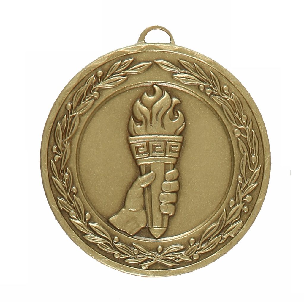 A top quality embossed diamond edged bronze metal victory medal made from brass. The medal displays a classic victory flame within a laurel design. The diameter is 52mm and the thickness is 3mm giving the medal a heavy feel. This medal can be engraved on the reverse and comes complete with a loop to accomadate a ribbon.