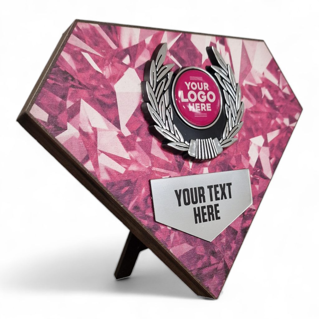 A bold and prestigious award, the Diamond Pink Birchwood Logo Insert Shield is perfect for recognising outstanding accomplishments.