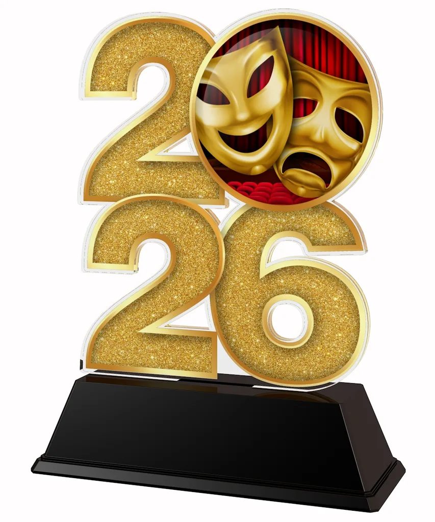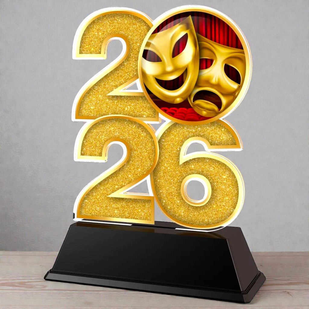 Celebrate creativity, performance and dedication with the Drama Year Trophy, a bold and modern acrylic award designed especially for schools, drama clubs, theatre groups and performing arts programmes. Featuring a striking year design and full-colour drama-themed imagery, this trophy makes a standout centrepiece for any awards evening or end-of-year presentation.