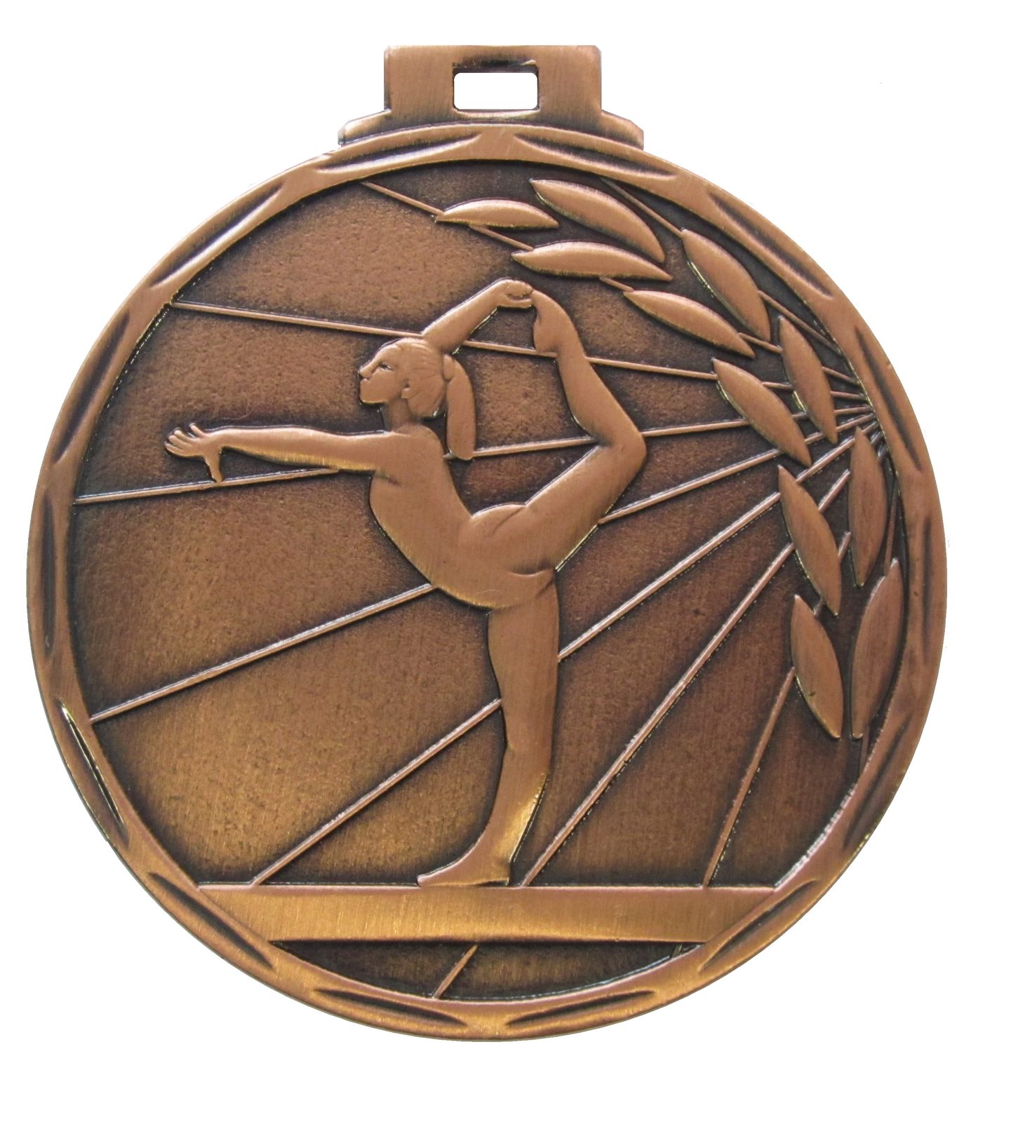 An excellent value heavy bronze Gymnastics medal made from iron. This medal can be engraved on the reverse and comes complete with a loop to accommodate a ribbon.