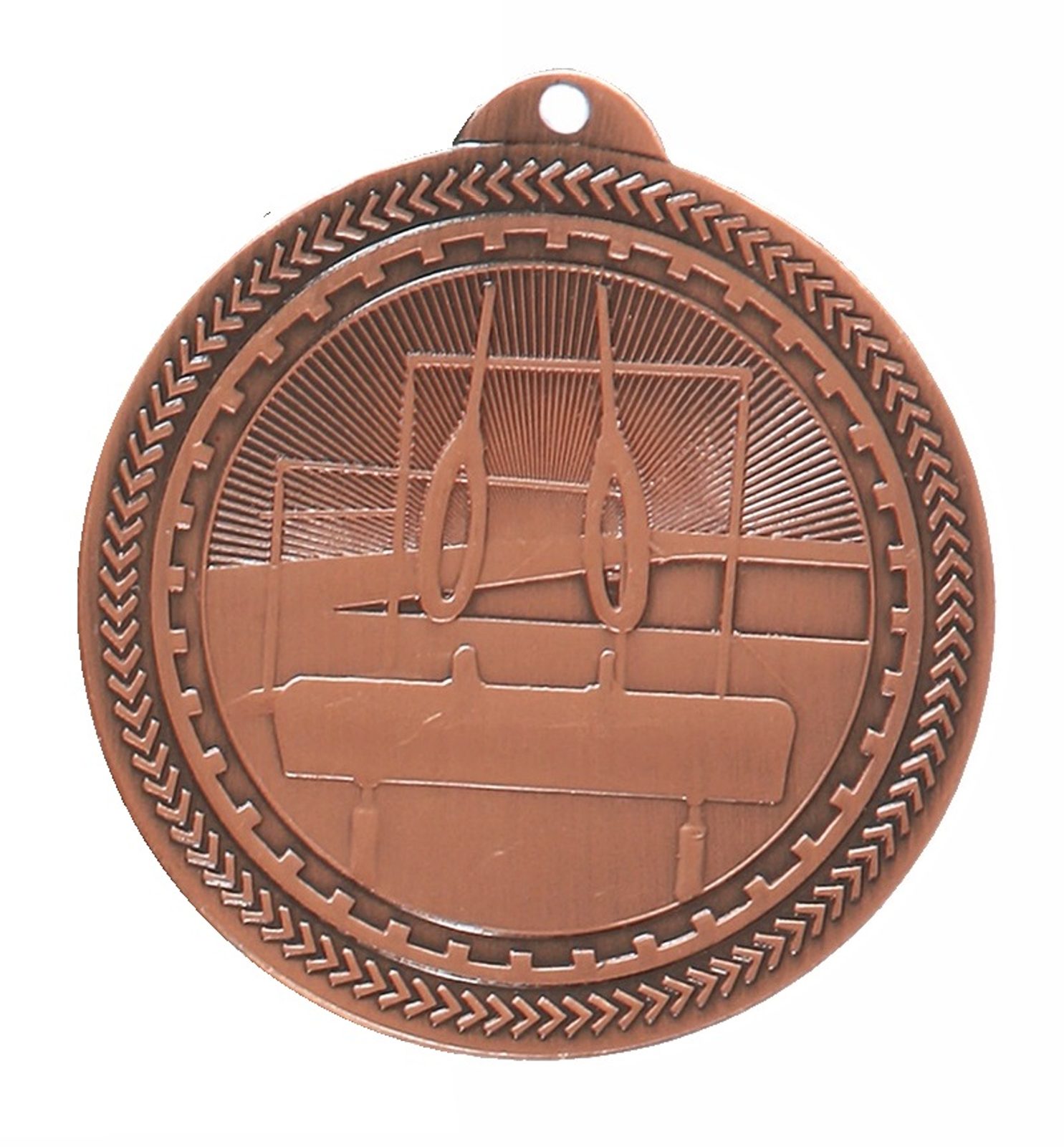 An excellent value heavy bronze Gymnastics medal made from iron. This medal can be engraved on the reverse and comes complete with a loop to accommodate a ribbon.