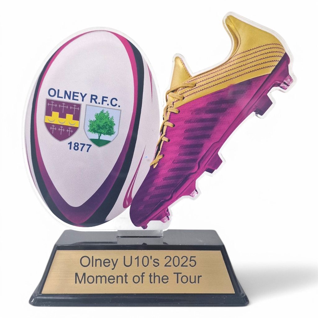 - Quick Delivery: Enjoy modern designs like the Edison Rugby Ball & Boot Custom Acrylic Logo Trophy, featuring your club colours and logo.
